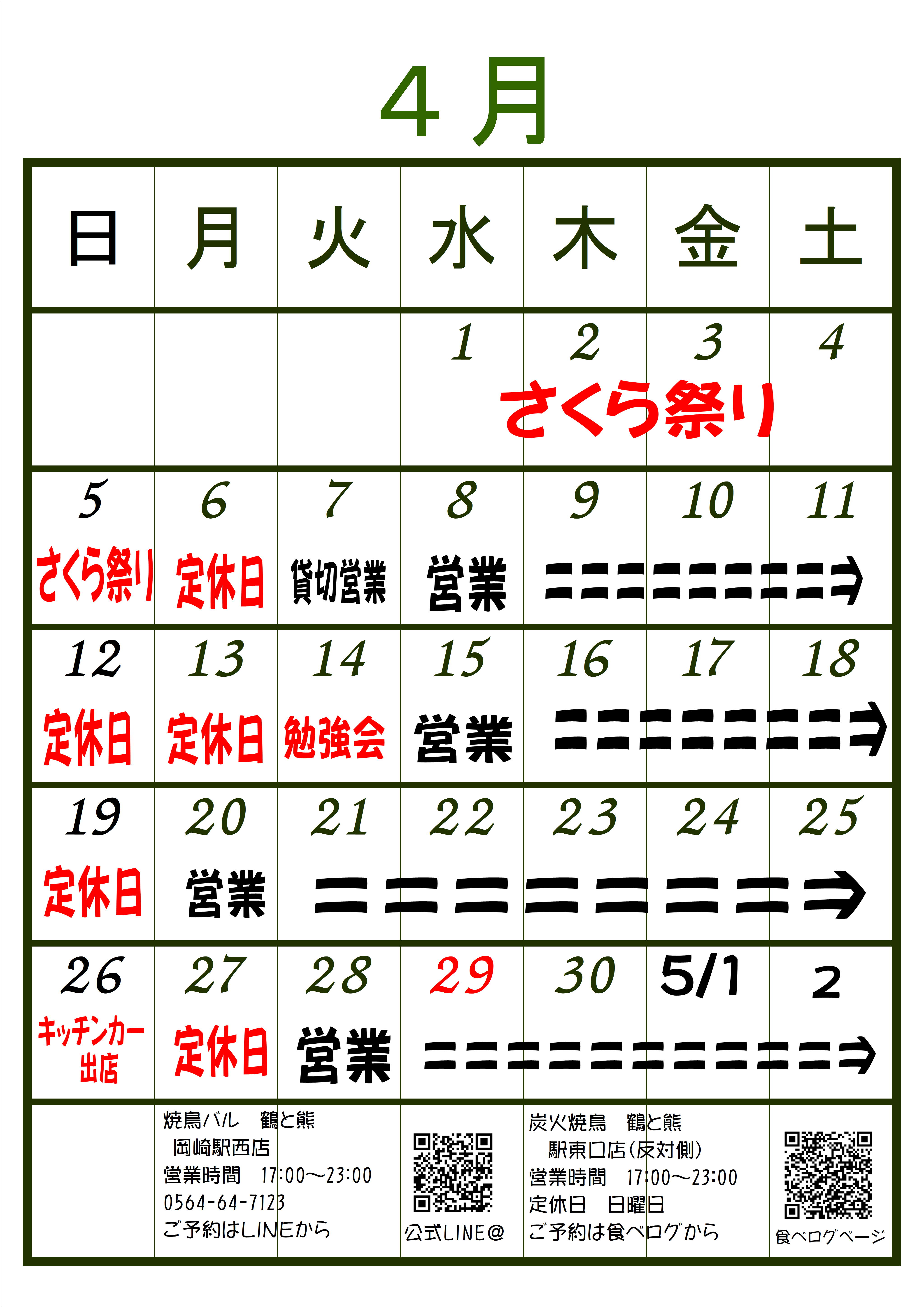 営業日・イベントカレンダー